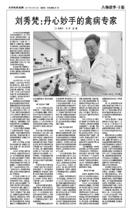 他,就是中国工程院院士,扬州大学兽医学院教授、博士生导师,国家重点学科预防兽医学学科带头人刘秀梵。