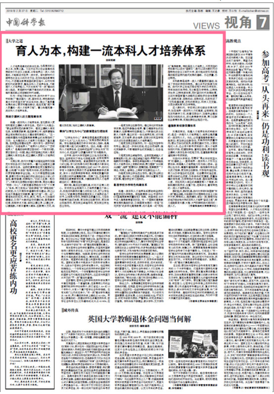人才培养是高校的根本任务,也是高校的立身之本、发展之基。习近平总书记在全国高校思想政治工作会议上强调,只有培养出一流人才的高校,才能够成为世界一流大学。面对新时代中国特色社会主义的历史方位,在加快推进教育现代化、开启建设教育强国的新征程中,如何对照新时代的新要求,重构本科人才培养体系,不断提升人才培养能力,不仅关系到“双一流”建设的深入推进,更是新时代赋予高校的历史使命,是每所高校都必须破解的时代命题。