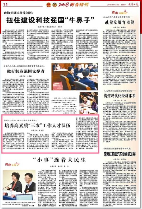 农业农村农民问题是关系国计民生的根本性问题,解决好“三农”问题是全党工作的重中之重。乡村振兴战略明确:“要坚持农业农村优先发展”,要“培养造就一支懂农业、爱农村、爱农民的‘三农’工作人才队伍”。全国人大代表、扬州大学校长焦新安认为,在中国特色社会主义新时代,必须将培养“三农”工作人才队伍上升为国家层面的战略系统工程来抓。