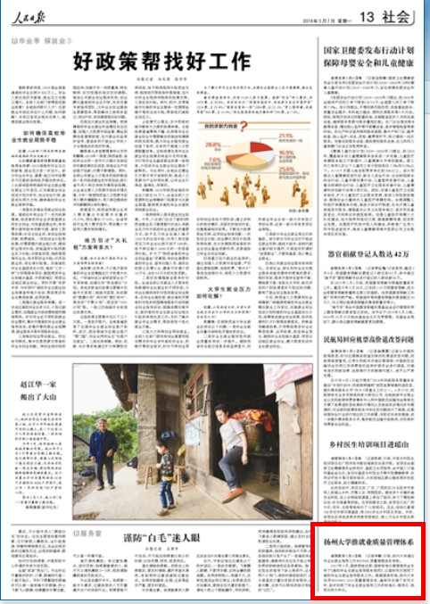 2017年5月,国家质检总局、国家标准化管理委员会发布了《高校毕业生就业指导服务规范》,以国标形式规范了高校毕业生就业指导服务工作。根据国家标准,扬州大学采用ISO9001:2015质量管理体系,编制并实施了系列文件,逐步实现了毕业生就业指导工作的标准化、程序化、规范化和文件化。(记者申琳)