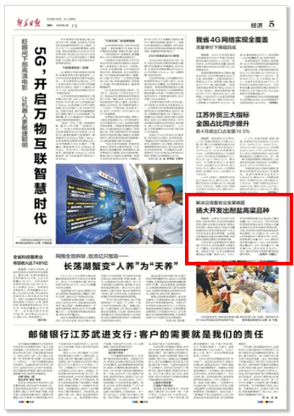 江苏沿海大型养殖场奶牛青饲草以玉米为主,但在盐碱地上种植玉米,产量低,无法满足奶牛饲养需要。周桂生介绍:“江苏沿海滩涂盐碱地盐分含量一般在0.3%- 2.0%,所选作物耐盐能力必须达到土壤含盐量0.3%-0.6%左右。”扬大科研团队筛选和培育出适合不同盐分含量盐碱地生长的珍珠黍和高粱品种。目前,科研团队选育的耐盐高粱品种每年播种1次,可割刈3次-4次,每公顷盐碱地年产鲜草80吨-90吨,饲草粗蛋白含量16%-24%,酸性洗涤纤维含量34%-36%,中性洗涤纤维含量65%-66%,钙含量0.7%,磷含量0.3%,养分吸收可达67%-69%,是奶牛和肉牛理想的青饲料和青贮饲料。(葛灵丹沙爱红)