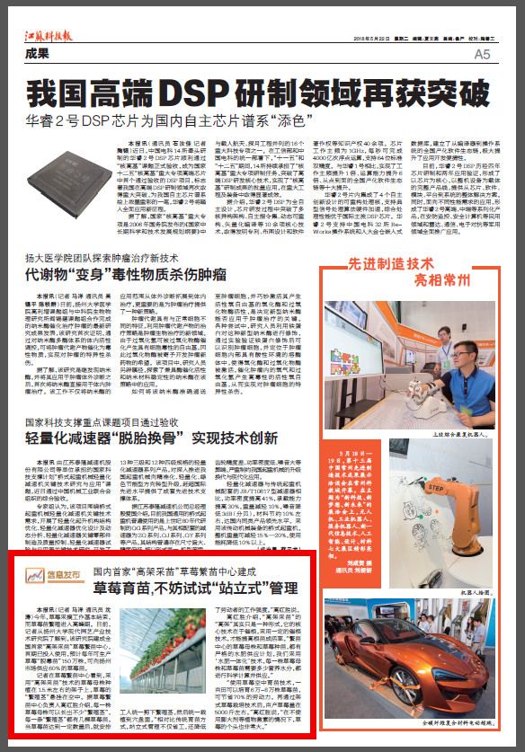 今年,草莓采摘工作基本结束,而草莓苗繁殖进入高峰期。日前,记者从扬州大学现代园艺产业技术研究院了解到,该研究院建成全国首家“高架采苗”草莓繁苗中心,首期已投入使用,预计每年可生产草莓“脱毒苗”150万株,可向扬州市场供应60%的草莓苗。