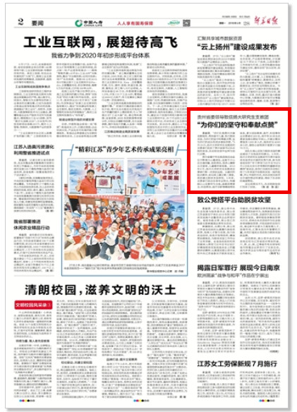 “你们扎根贵州开展支教服务、帮扶留守儿童、助力脱贫攻坚,为你们的坚守和奉献点赞,也为你们的成长和进步感到欣慰。”5月23日,扬州大学研究生支教团的志愿者们收到了贵州省委书记孙志刚的来信,孙志刚在信中这样为他们点赞。