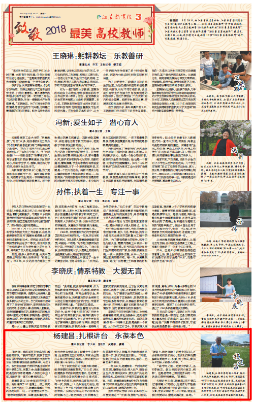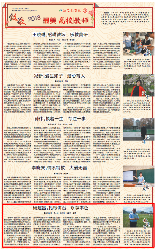 扬州大学农学院1501 班本科生朱亦雯觉得这个“大咖”很接地气,她说:“课堂上,杨老师除了讲授专业知识,还会在课间和我们谈心,告诉我们平时要脚踏实地地学习、积累,到了考试、参加生产实践才能得心应手。”