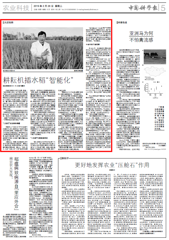 “育苗机插是我国南方多熟制地区水稻机械化栽培的主要方式,我们团队协作努力,提出了基于毯苗和钵苗的两套‘三控’育秧技术,显著增长秧龄、提高苗质、改善大田群体质量,特别是钵苗育秧方式的创新与应用,数据显示比毯苗机插增产10%左右。”张洪程介绍。
