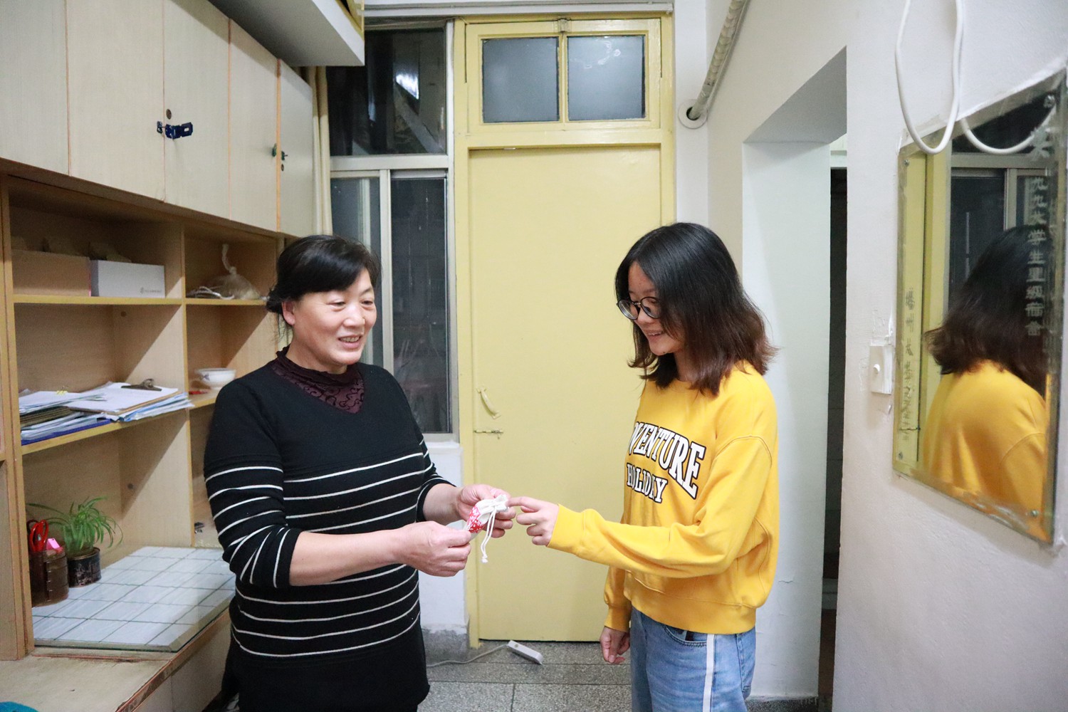 为了宣传“衣冠疗法”,让更多的人参与进来,心理协会的成员们分散到各个班级进行宣传,也传授了很多传统医药的知识,呼吁大家亲自动手制作香囊。记者发现,制作完成后,许多同学就迫不及待的送给了身边人,有老师、宿管、保安以及很多辛勤服务校园的人。