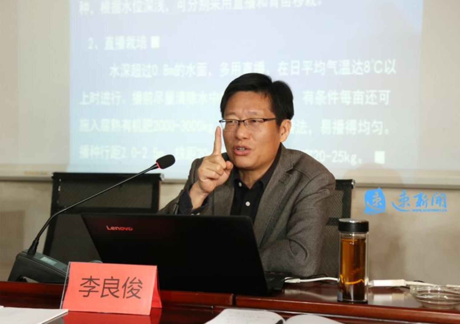 李良俊教授用平实易懂的语言,图文并茂地为与会人员详细讲解了芡实、菱角的生物特性、品种类型、栽培技术、市场前景,特别是种、采、收及采后处理等各个环节技术要点。