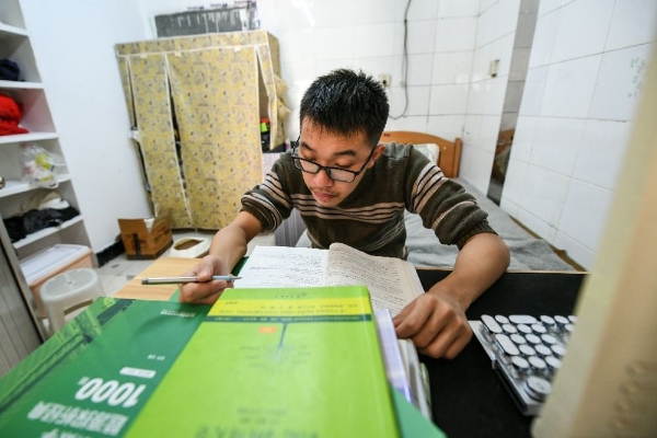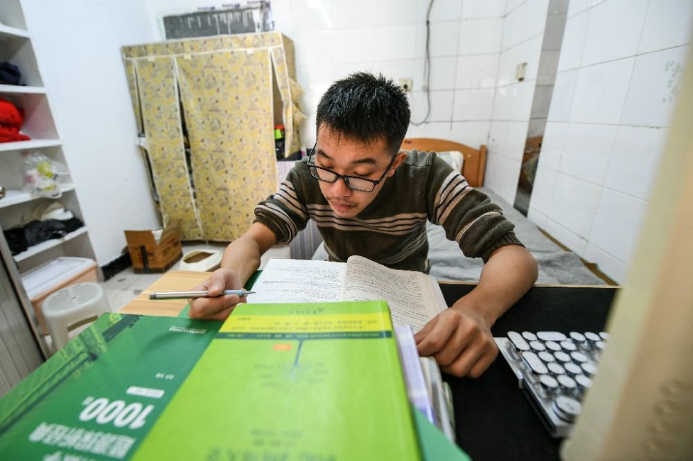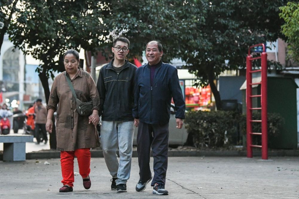 目前,李东明一家租住在学校附近的一处40平方米的出租屋内,每天大部分的时间李东明都在复习功课,晚饭过后,李东明会陪着父母一起到附近的公园散散步、聊聊天。