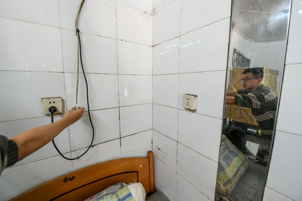 ↑出租屋内光线不好,白天的时候,李东明会打开房门,改善采光条件。