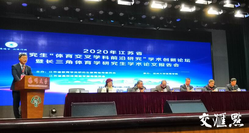 交汇点讯 12月11-12日,2020年江苏省研究生“体育交叉学科前沿研究”学术创新论坛暨长三角体育学研究生学术论文报告会在扬州大学举行。国务院学位委员会心理学评议组成员、北京大学心理与认知科学学院长江学者周晓林教授,扬州大学副校长陈国宏教授,江苏省教育学类研究生教育指导委员会副主任颜军教授,江苏省教育学类研究生教育指导委员会秘书长邵泽斌教授,教育部“长江学者奖励计划”青年学者陈爱国教授,中国体育科学学会期刊工作委员会副主任、《体育与科学》杂志主编程志理教授以及来自长三角地区的浙江大学、南京大学、同济大学、东南大学、华东师范大学、上海体育学院等21所高校200多名专家学者、体育学研究生参加论坛。
