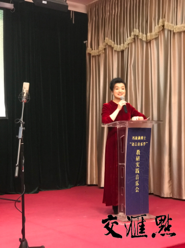 她说:“举办这次活动,正是基于这门新专业,向大家汇报阶段性的教研成果。其目的:一是传承中华传统文化、坚持‘文化自信’、树立正确的艺术价值观,为学生推荐前沿方法论、治学理念和研究方法;二是加强学生的美育教育,主动创造舞台实践机会,从作品表演中领略语言美、旋律美、心灵美和文化美,提升理论与实践相融合的创新能力;三是我主持的国家社科基金青年项目和校级教改课题,从教学研究角度做一个阶段性汇报。”