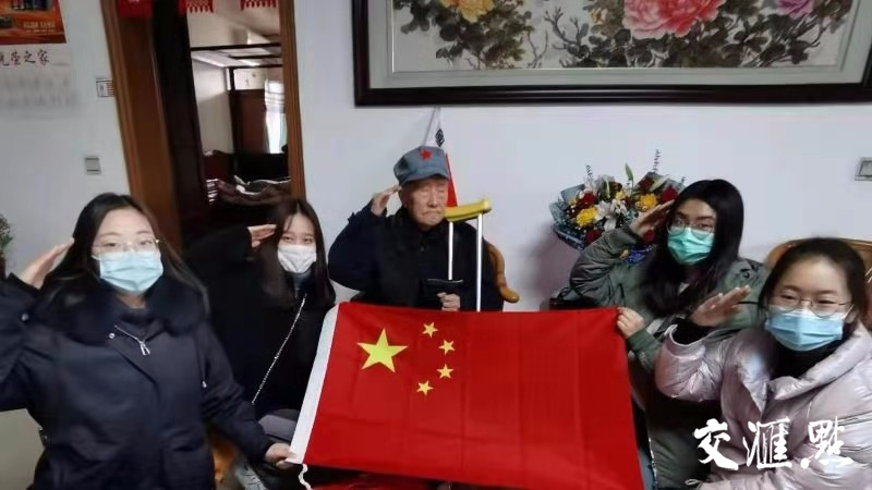 交汇点讯 “爷爷你好,我是扬州大学的学生,我和您也一样也是姜堰人!快过年啦,给您拜个早年,祝您身体健康!”在江苏省泰州市姜堰区蒋垛镇蒋垛村,有一位传奇老人,他是江苏省唯一健在的老红军战士吴九成,吴老今年已有107岁了。在建党一百周年来临之际,扬州大学的“星火小队”寒假社会实践团队的大学生们走进了吴老的家中,听革命故事,了解峥嵘岁月,展开了一场两代“00”后之间的对话。