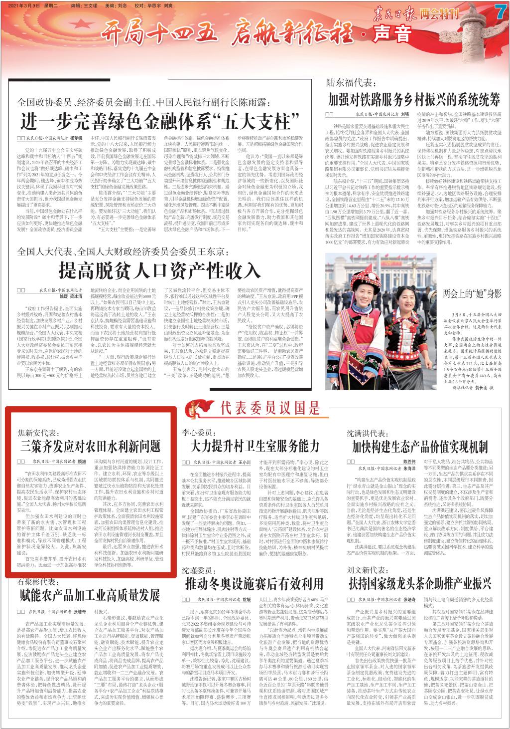 ——《农民日报》2021年3月9日 第007版:两会特刊·开局十四五 启航新征程·声音