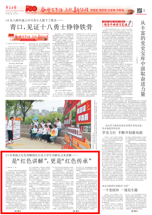 正如红色讲解团首批成员储莹在写给母校的信中所说,讲解员的经历是包括她在内的近万名扬大学子生命中最宝贵的财富,他们在讲解中砥砺品质、坚定信仰,其中近70%的义务讲解员光荣地加入了中国共产党。