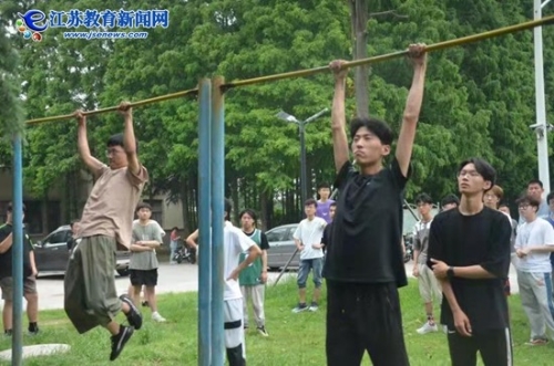 在引体向上比赛现场,扬州大学学生体质测试与健康促进中心副主任刘成老师告诉记者:“同学们尽可能做到动作规范,一次又一次拼尽全力向上。赛场外,欢呼声、加油声不断,大家互相鼓励,在奋力拼搏中尽情享受运动的快乐。”