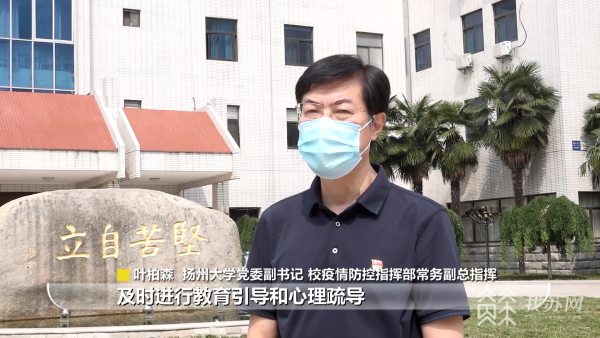 扬州大学党委副书记、校疫情防控指挥部常务副总指挥叶柏森说:“自疫情暴发以来,我们在第一时间就启动了应急预案,全体校领导带领学工、后勤、保卫等人员,入住到7个校区,下沉到防控一线,实行封闭式、网格化、精准化管理,妥善安排好师生的学习生活,及时进行教育引导和心理疏导,并动员组织了800余名医学师生多次出征,志愿服务南京、扬州的核酸检测,承担起扬大人的责任与担当!目前,留在学校的一万余名师生无一人感染。”