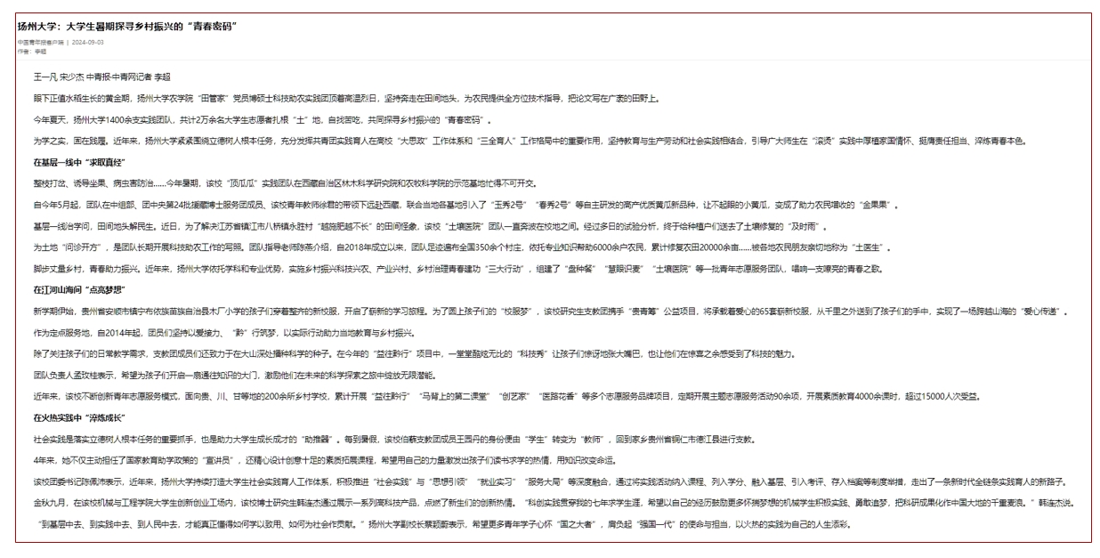 【中国青年报】扬州大学:大学生暑期探寻乡村振兴的“青春密码”